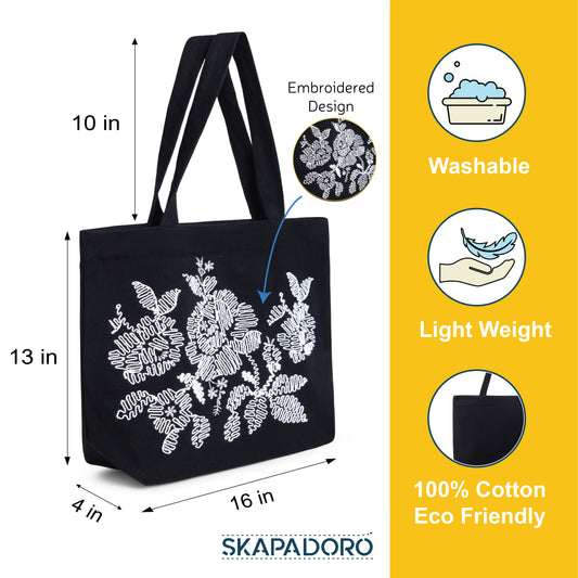Mighty Zip Tote - Flowers I Embroidered I